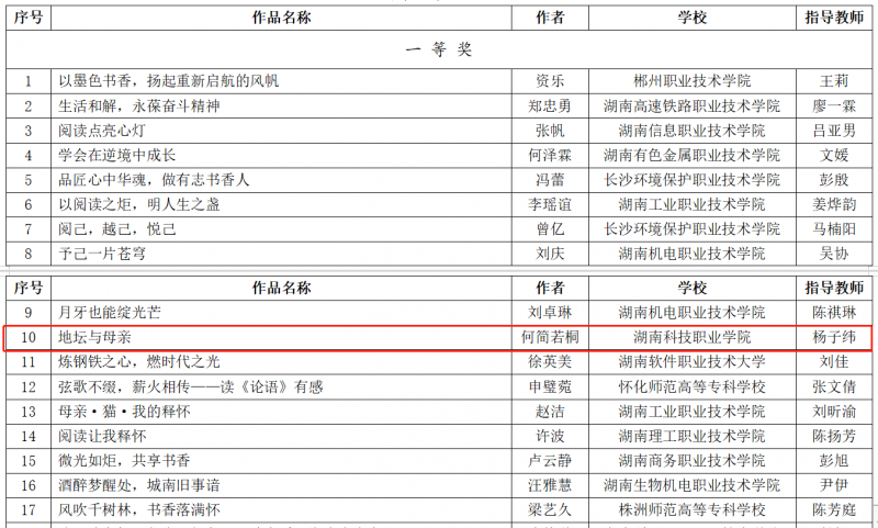 喜报!我校学子在湖南省职业院校楚怡读书行动“主题征文” 获一等奖