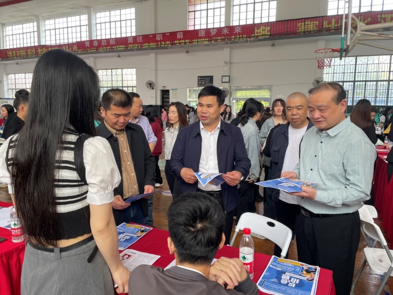 为积极响应学校春季促就业攻坚行动的号召,抢抓春季开学后促就业工作关键期, 4月2日上午,艺术设计学院在雨花校区体育馆举办2024届毕业生专场招聘会,雨花区人社局副局长李小冬、主任唐莹莹等一行莅临现场视察指导,校长蒋阳飞、副校长程志群在招生就业处相关负责人陪同下深入招聘会现场,详细了解用人单位招聘需求和毕业生求职情况。艺术设计学院党总支书记邓建辉、院长莫钧等在现场听取用人单位对学校人才培养的意见建议,鼓励毕业生端正心态,主动出击,把握好春季招聘机遇。