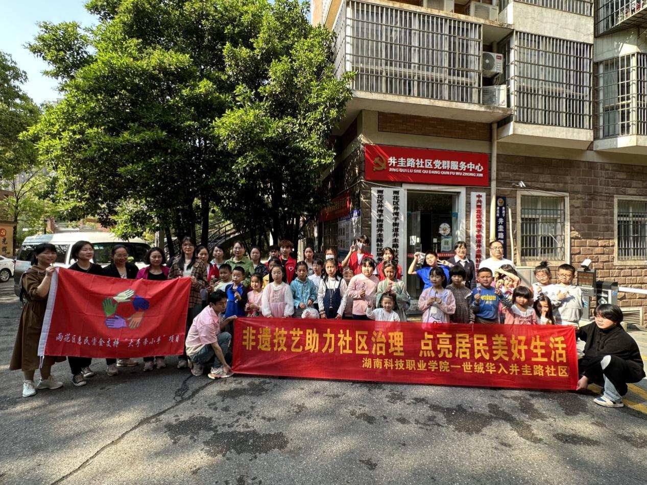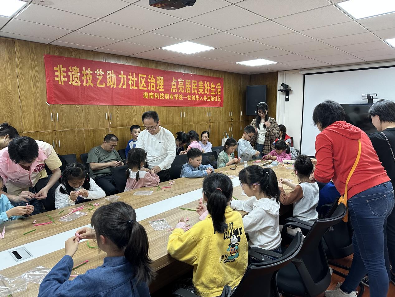 在“非遗技艺助力社区治理,点亮居民美好生活”活动中,艺术设计学院(湘瓷学院)党总支组织“一世绒华”非遗绒花双创团队走进社区,向居民们详细讲解了绒花的历史背景、文化意义及其制作工具等,并现场展示了传统绒花的制作过程,带领社区居民一起动手制作绒花。此次非遗传承活动,让居民们更深入地了解了我国的非遗文化,丰富了社区居民的精神文化生活。