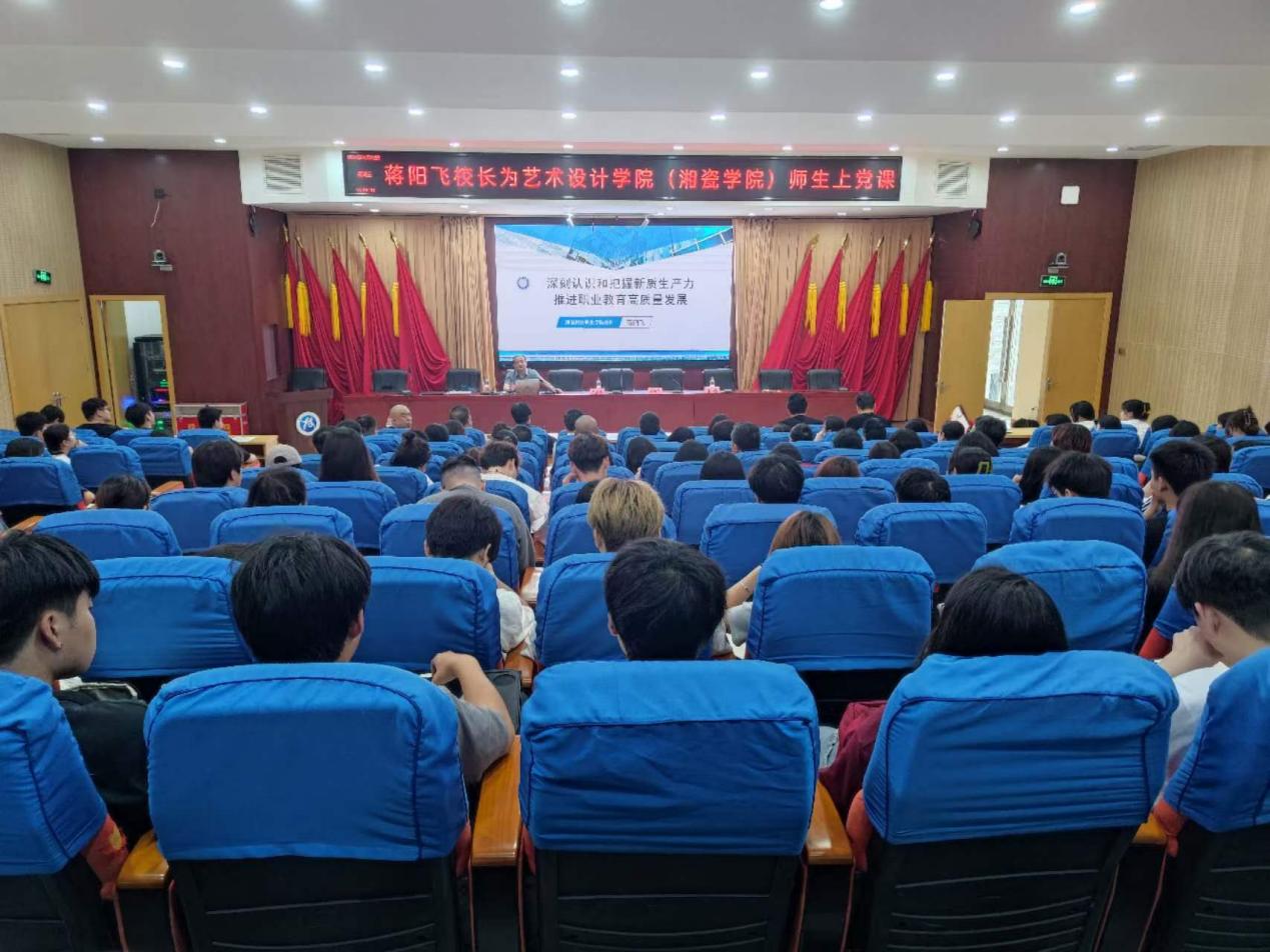 5月22日下午,艺术设计学院(湘瓷学院)党总支在雨花校区多功能报告厅举行主题党日活动,校长蒋阳飞以“深刻认识和把握新质生产力 推进职业教育高质量发展”为题讲授了一场主题鲜明、内容丰富的专题党课。党课由党总支书记邓建辉主持,全体教师党员和学生入党积极分子代表共计百余人参加。