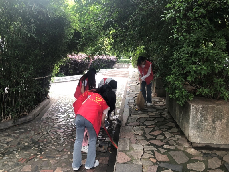 19期发展对象在打扫花坛中小道