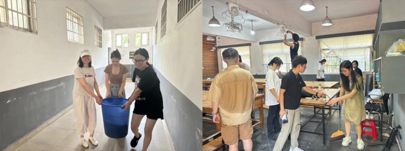 活动中,学院领导与辅导员组织同学们分组、分区域、分楼层对相应教学区域进行了彻底的清扫,并对窗台、风扇、展柜等卫生死角进行重点清理,逐间检查教室设施情况,查漏补缺。师生们干劲十足,齐心协力,清理后的教室面貌焕然一新。