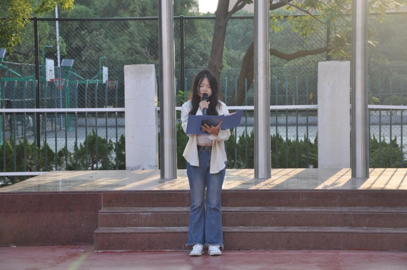 艺术设计学院(湘瓷学院)辅导员代表贺越以“以热爱赴山海,以卓越致青春”为题作国旗下的讲话,分享对祖国华诞的祝愿和对新学期的展望。新中国历经75周年风雨,从百废待兴到欣欣向荣,是共产党领航掌舵下全国人民砥砺奋进的成果。她强调,继往开来,新时代青年也应自觉担起强国重任,坚守心中热爱,筑牢专业基础;坚持自信自立,做好未来规划;锤炼品德修为,自觉担当责任。
