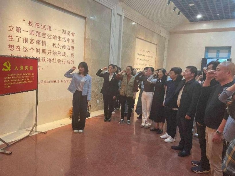 在毛泽东与第一师范纪念馆内,党员们怀着崇敬之情,瞻仰了毛泽东同志青年时期的照片和用过的物品,参观了他读书生活的教室、宿舍等重要场所,在丰富的史料和展品中,深入了解了毛泽东在湖南第一师范求学、执教和从事早期革命活动的主要经历及其探索救国救民道路过程中的思想转变和发展历程。