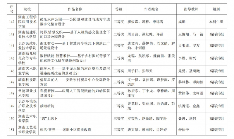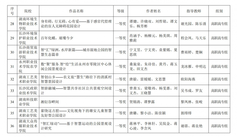 近日,湖南省教育厅组织举办的“2024年第五届湖南省大学生风景园林学科竞赛”圆满落幕。我院黎凤林、张峻、吕宙、谭陶然四位老师指导的三支参赛队伍,从全省众多参赛队伍中脱颖而出,获得高职高专组一等奖一项、二等奖一项、三等奖一项,黎凤林老师荣获优秀指导教师称号。