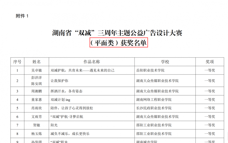 喜报!我院学子在湖南省“双减”三周年 主题公益广告设计大赛中获奖