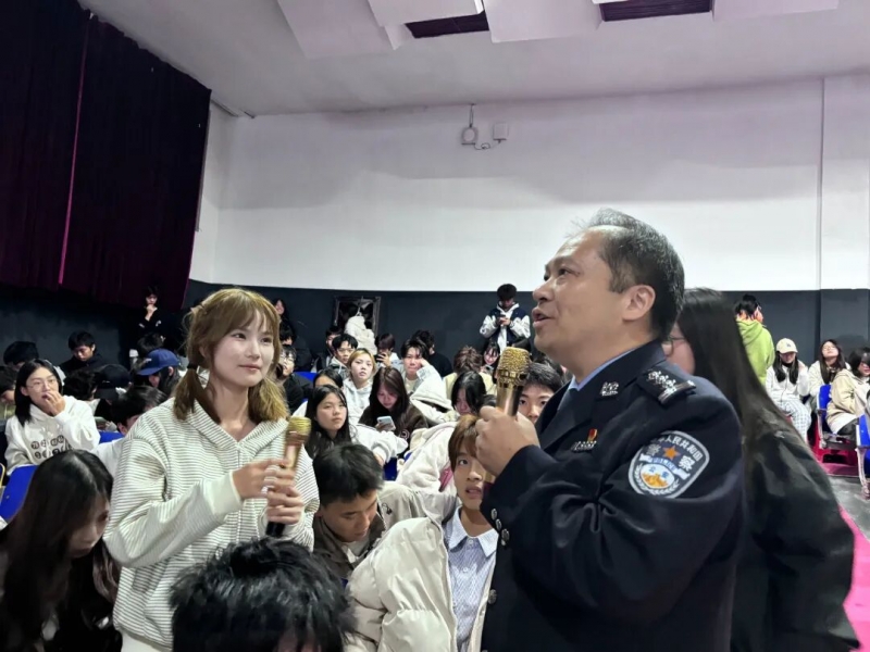 2025年10月22日晚,湖南科技职业学院雨花校区大礼堂内气氛热烈。学校集结全体大一新生,特别邀请雨花区公安局刘杰警官共同开展“防诈骗专题宣传活动”旨在通过专业讲解与互动体验,强化新生反诈认知,切实守护大家的“钱袋子”,坚决不让个人钱包沦为骗子的“业绩KPI”。