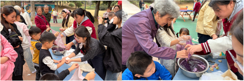 此次活动不仅是一次环保科普行动,更是一堂沉浸式的“劳动+美育”融合课程。社区居民不分老幼,皆沉浸于动手创造的乐趣中。孩子们在游戏中理解了资源循环的意义,长者重温了传统手工艺的智慧,年轻家庭则收获了亲子协作的乐趣。居民李女士展示着自己染制的粉色方巾,意义,长者也重温了传统手工艺的智慧。居民李女士展示着自己染制的粉色方巾,欣喜地表示::“这块布独一无二,我打算把它做成围巾,每次佩戴都会想起这个有意义的下午和它所代表的环保理念。”