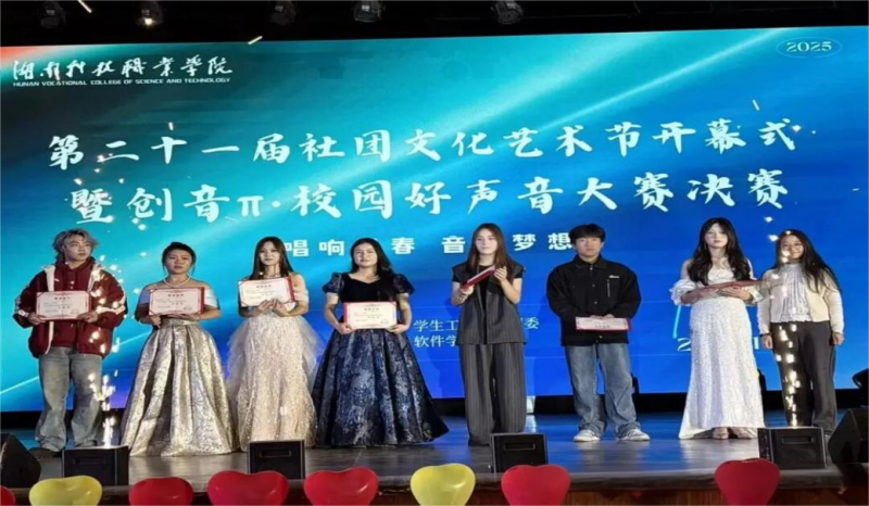 2025年11月26日湖南科技职业学院“校园好声音”大赛落下帷幕,我院学子通过院级比赛、校级海选,最后成功晋级四位选手参加总决赛,她们凭借扎实的专业功底与炽热的音乐热爱在比赛中脱颖而出,成功斩获佳绩,为学院赢得荣誉!他们分别是冠军聂嘉乙,亚军谌昱彤,季军刘德明,优胜奖张珊珊。