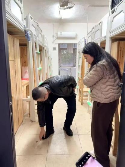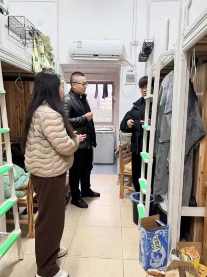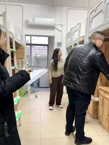 在逐楼层、逐宿舍的细致排查中,检查组重点核验电源总闸关闭状态、门窗锁闭情况,全面清点宿舍设施完好性并登记备案,同步对接后勤部门落实假期维修事宜;针对留校学生宿舍,详细了解其生活需求,针对性普及用电安全规范与消防应急知识。陈婵书记在巡查中着重强调:“寒假期间,安全管理工作须臾不可放松,必须构建‘全流程追踪、全要素保障’的安全体系,切实消除家长后顾之忧,筑牢学生安心防线。”